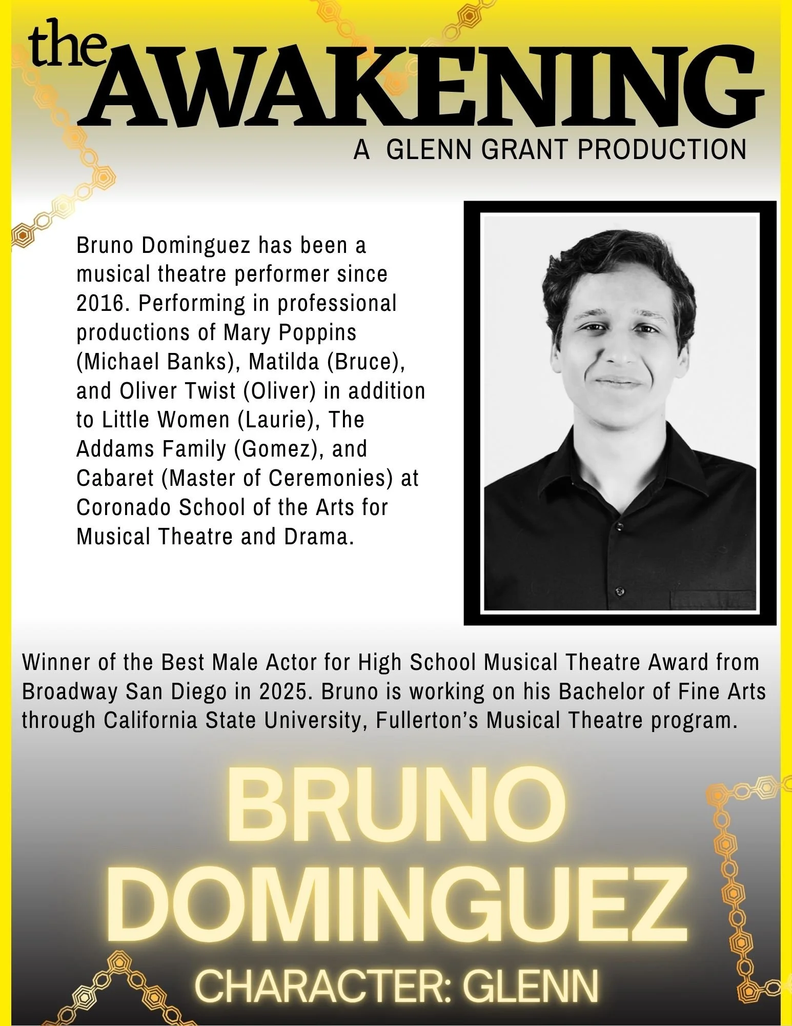 SYNOPSIS: The Awakening Spoken Word Musical, written and produced by Glenn Grant is a genre-defying live experience that merges music, spoken word, and theatrical storytelling into one emotionally charged journey. Each act unfolds like a chapter that our audience members have told us they relate to, blending soul, jazz, hip-hop, and orchestral undertones with raw monologues and poetry that cut straight to the human core. The result: a performance that feels like both a concert and a confession, where the audience doesn’t just watch they feel.